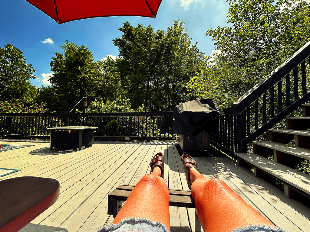 After 9:00 AM, even the puppies stay inside until the deck is shaded by the barndo. With rugs covering the painted deck, it’s still hot on their feet.