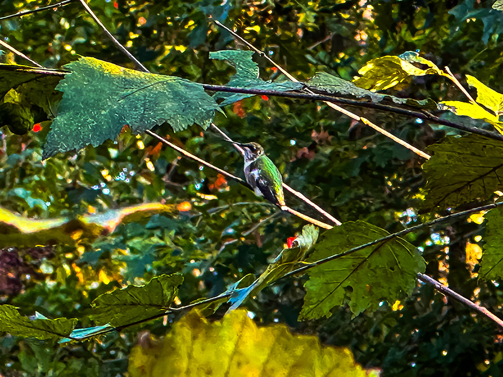 I’ve had a few straggler hummingbirds hitting up the feeder, but only a few. These last to leave are brave little suckers. They sit in the bushes and twitter around, usually feeding early evenings. I’ve only one feeder out now and I’m cleaning it long before it’s empty. Although I’m looking forward to the change of seasons, I’ll sure miss watching them.