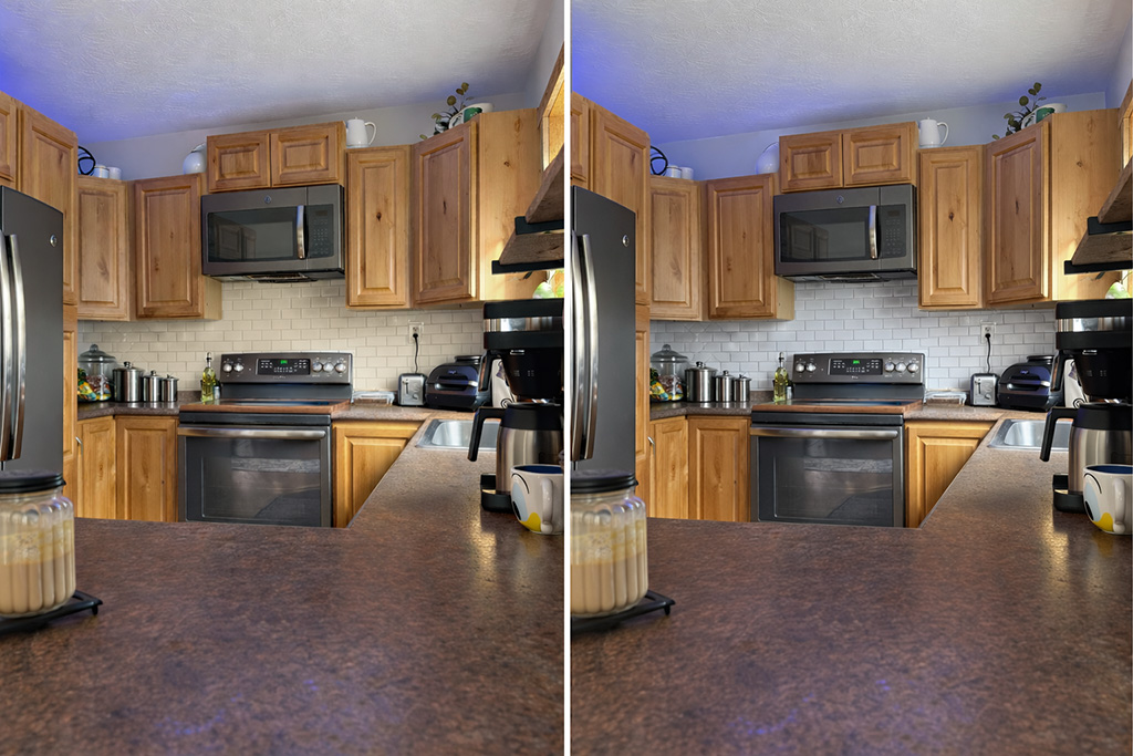 Jack: With the coloring of your cabinets, I actually prefer cream over bright white for your backsplash. Cream complements that warmth instead of fighting it. Bright white next to pine cabinets can look stark and slightly “builder basic” or unfinished.