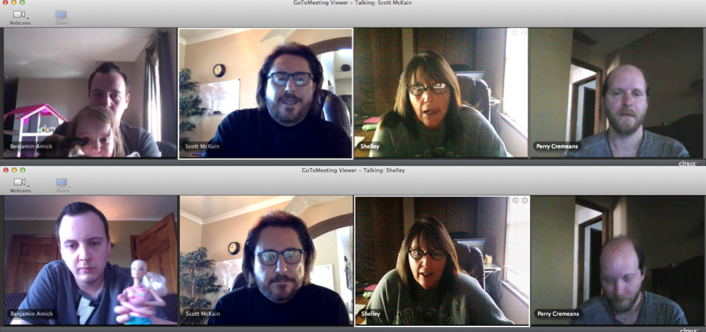 Colette wasn’t in school yet so she — and Barbie — attended too. She LOVED those meetings. So did Scott. The expression on the faces of the rest of us tell exactly what we thought of them. Perry’s looking down in the last screenshot. I’m guessing it was because he was reading the text I sent him moments before. It probably said something like, “ROLL. IT. UP!