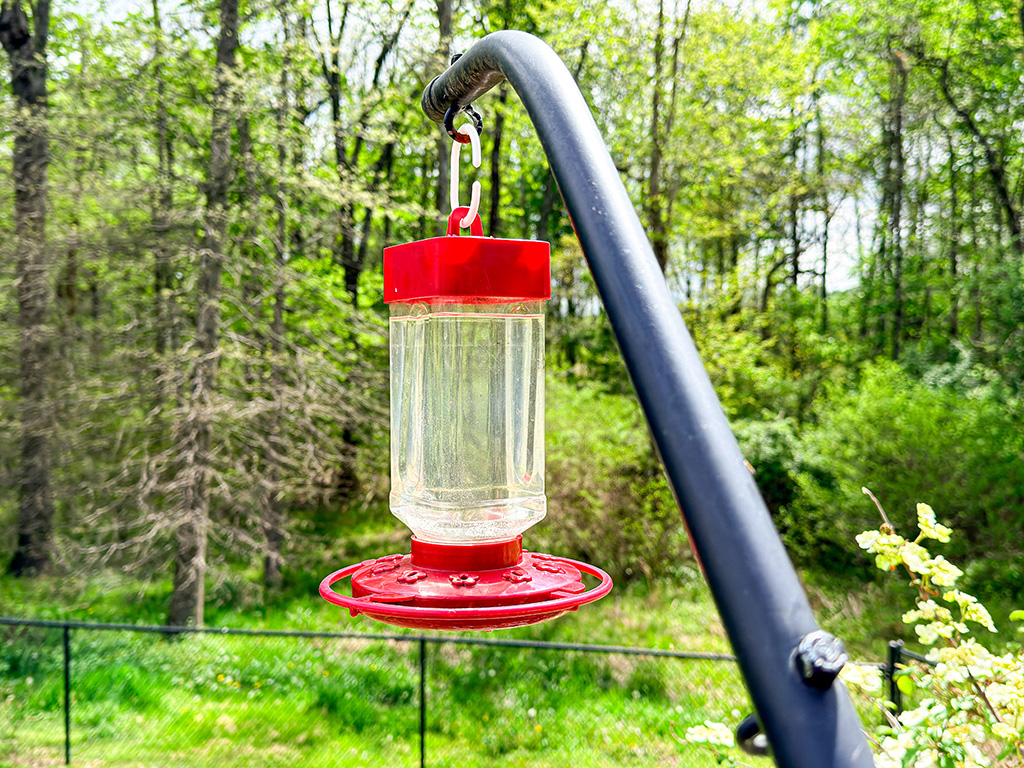 Figuring it’s about time for hummingbirds to roll into the Ville, I cleaned my feeders and hung them outside. I’m ready for the little aviator guests — but they aren’t here yet!
